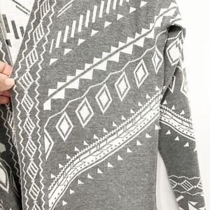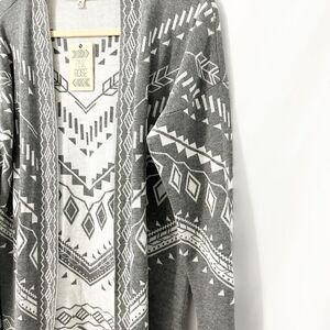 🟢Pink Rose Gray & Ivory Chevron Aztec Print Open Front Knit Cardigan Size XL