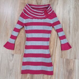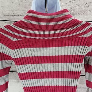 💚Pink Rose Gray & Pink Striped Button Cowl Neck 3/4 Sleeve Sweater Large