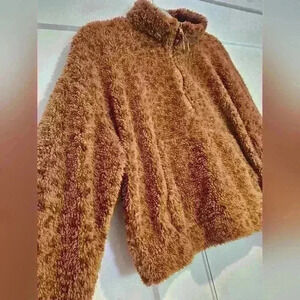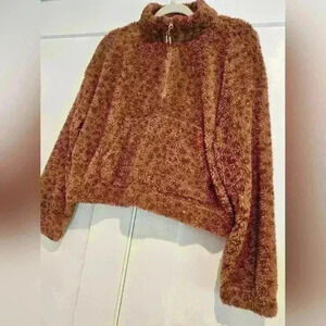 Pink Rose Half Zip Animal Print Sherpra Size Medium In Excellent Condition