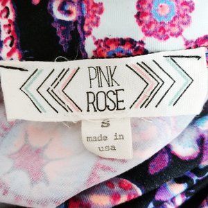 Pink Rose High Neck Sleeveless Artsy Floral Prints Trapeze Dress Y2K Kawaii