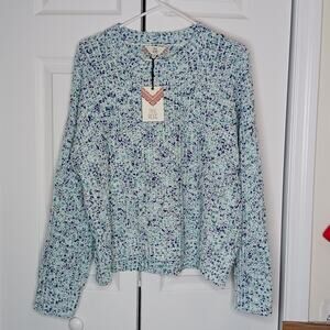 Pink Rose Ivory/ Teal Blue Chunky Knit Sweater Sz XL- NWT
