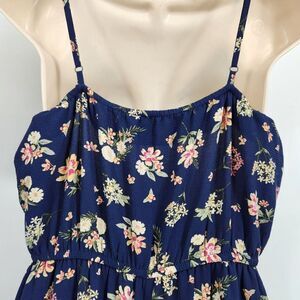 Pink Rose Jumpsuit Women's Large Blue Floral Chiffon Wide Leg Spaghetti Straps