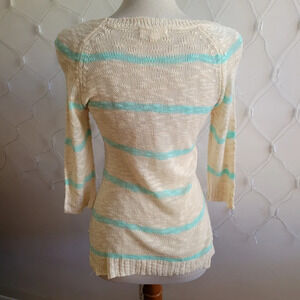 °Pink Rose Knit Top Soft Mint & Cream Long-Sleeve Size Medium