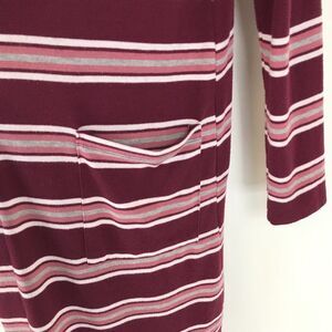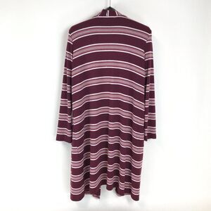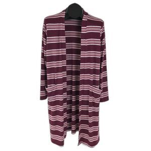 Pink Rose Long Cardigan Size Large Open Front Striped Pockets Stretch Knit