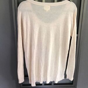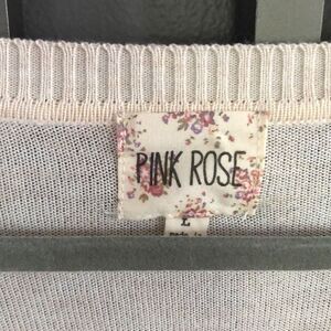 Pink Rose Oatmeal colored cream lightweight Sweater size L scoop neckribbed sleeves