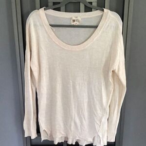 Pink Rose Oatmeal colored cream lightweight  Sweater size L scoop neckribbed sl