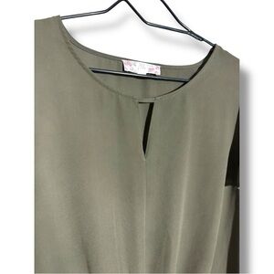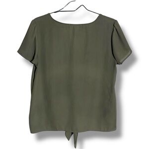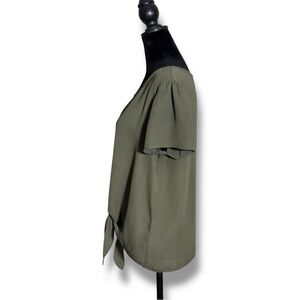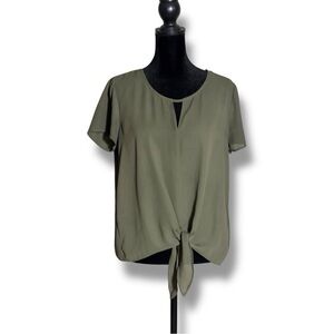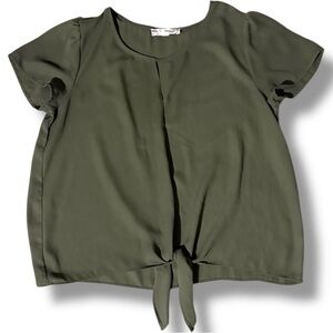 Stylish olive blouse with a tie-front design. Ideal for versatile wear.