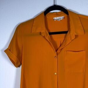 Pink Rose Orange Button Up Blouse Women's Shirt Size Small Pre-Loved