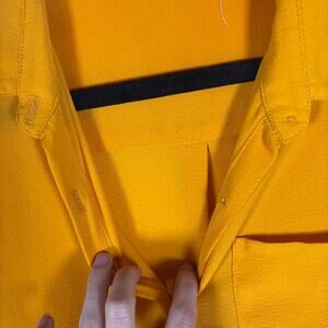 This pre-loved women's button-up shirt features a beautiful blend of pink and orange hues, perfect for adding a pop of color to your wardrobe.
