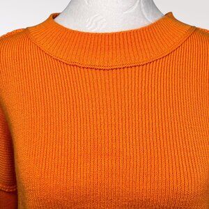 Short, boxy pullover in a bold orange knit. Ribbed texture with exposed seaming give it that easygoing, broken-in feel.