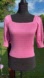 This sweater is beautifully pink, ribbed knit top featuring a square neckline and puffed, elbow-length sleeves.