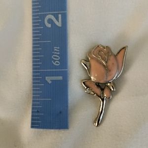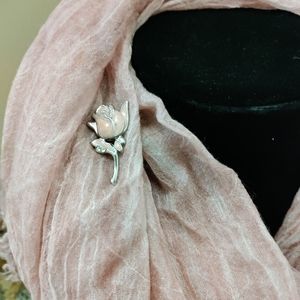 beautiful vintage piece! pink rose on Silver. Great gift for mom, sister or grandmother. scarf not included. Approx 1.5" H. Not many out there like it, I did research and couldn't find the same exact one. 2 diamonds pictured. not marked. asking 21 OBO