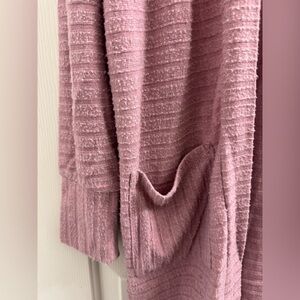 Stay cozy and stylish with this pink open-front cardigan sweater. Perfect for layering, this sweater adds a touch of elegance to any outfit.