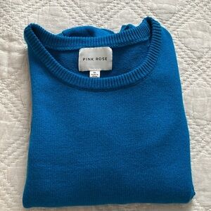 Pink Rose Puff Sleeve & Ribbed Hem Crew Neck Sweater Blue Sz M/L
