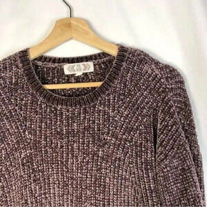 Pink Rose Purple Chenille Knit Pullover Crewneck Sweater M