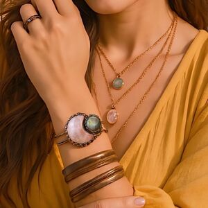 Let your inner moon goddess shine with this breathtaking handcrafted bangle cuff bracelet! π Featuring a stunning pink rose quartz crescent moon and a shimmering labradorite gemstone, this unique piece radiates boho chic celestial vibes. Whether you're dressing up or embracing your free-spirited side, this cuff is the perfect way to express your individuality and connection to natureβs energy. A true artisan treasure that brings light and mystery together in perfect harmony. π«