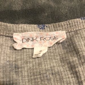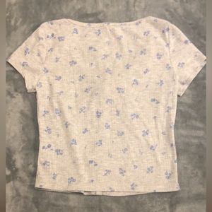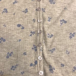 Pink Rose brand, gray with blue flowers, ribbed crop top. Size small, buttons are just for show.