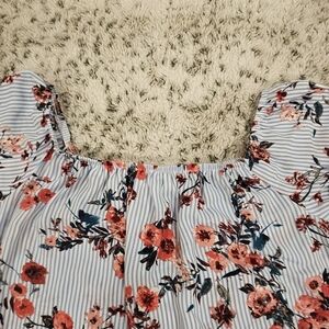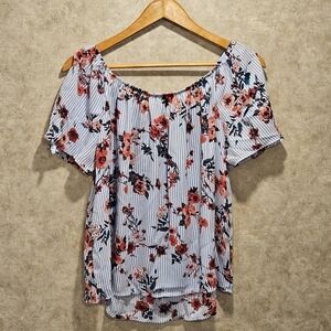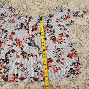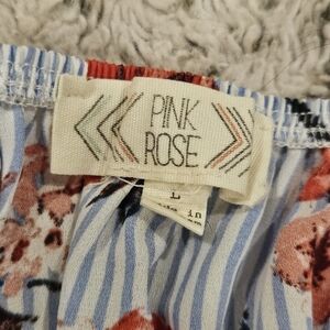 Pink Rose Size Large Floral Elastic Square Neck Short Sleeve Women's Top