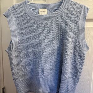 Sky blue knit tank top by Pink Rose. Features intricate pattern and sleeveless design.
