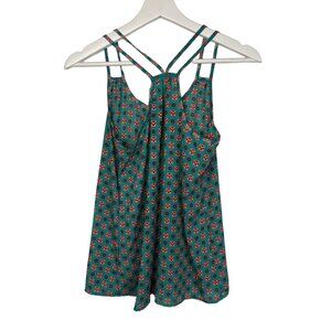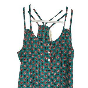 Lightweight and breezy, this Pink Rose sleeveless tank top is the perfect warm-weather staple. Features a strappy crisscross back, green base with red floral print, and flowy fit for effortless comfort. Size XS. Ideal for layering, vacations, or everyday summer style.