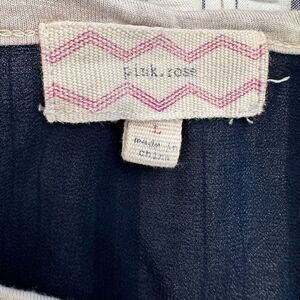 Pink Rose Striped Half Sleeve Sheer Yoke Rayon Blend Pocket Tee Black Pink Large