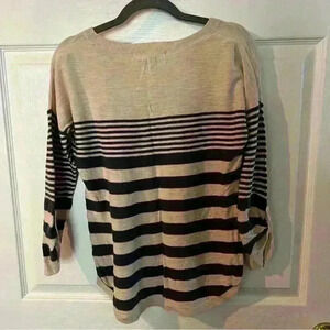 Pink Rose Striped Lightweight Sweater with Roll Up Sleeves. Size Large