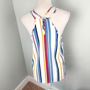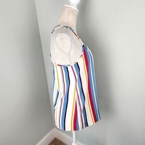 Pink Rose Striped Smocked Chest Line Spagetti Strap Top Size Small