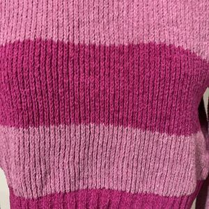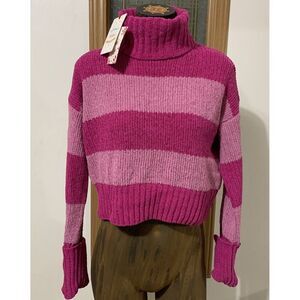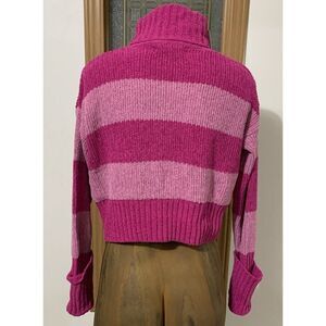 Pink Rose Sweater Size Small Pink Magenta Cowl Roll Neck Soft Striped