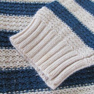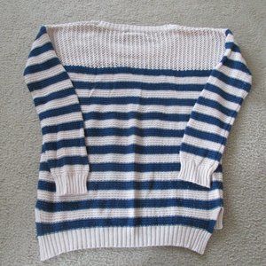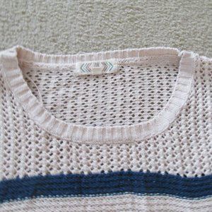 Pink Rose Sweater Womens Large Navy Peach Striped Long Sleeve Pullover Shirt Top