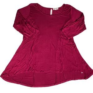 Women's soft stretchy 3/4 sleeve tunic tee shirt top from Pink Rose. Keyhole button closure in back. Thin and lightweight, it will go great with leggings. 95% Rayon, 5% Spandex. Hand wash cold, dry flat. Due to light & screen variations, colors may vary slightly from the images