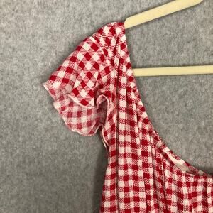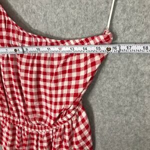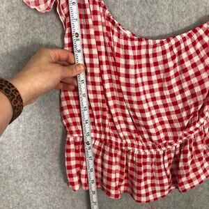 Pink Rose Top Womens Small Red Crop Gingham Check Ruffle One Shoulder Preppy