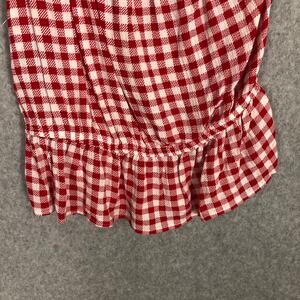 Pink Rose Top Womens Small Red Crop Gingham Check Ruffle One Shoulder Preppy Crinkle Boho Y2K Cute Goth Peplum Festival Summer