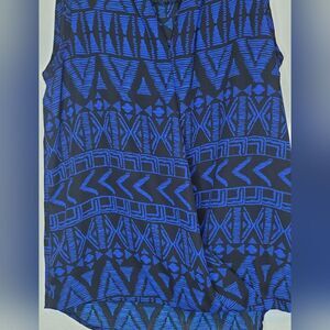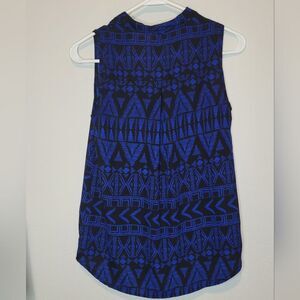 Black and Blue tribal print faux wrap swing shell top