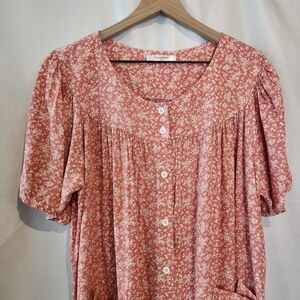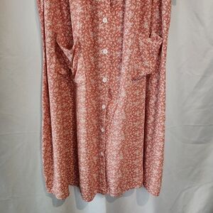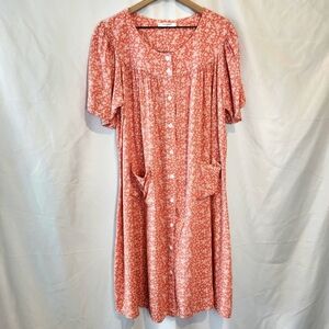 Pink Rose White Ditzy Floral Womens Sleep Dress Size XL Cozy Pajamas Housecoat