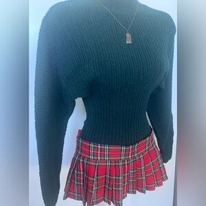 Pink Rose Wide Waisted Forest Green Crew Neck Sweater
