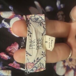 Pink Rose Women's Black And Floral Wide Leg Flowy Pants Size Small