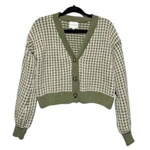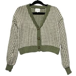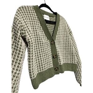 Pink Rose Women’s Button Up Knit Sweater / Size-Small / Color-Green, Cream / 3 Front Buttons / Measurement- Pit To Pit 20” inches, Shoulder To Hem 18” inches, Arm Length 20” inches / Pre-Owned