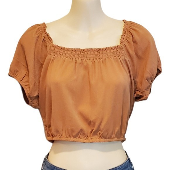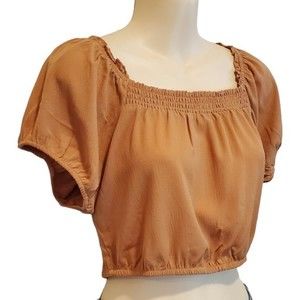Pink Rose Caramel Crop Top Size small Smocking in front Nwt 17" armpit to armpit 16" long