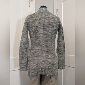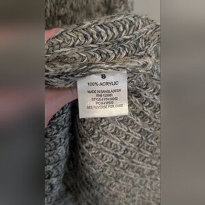 Vintage Pink Rose women's button up, chunky knit cardigan with V-neck. Neutral marled grey color with tortoiseshell buttons. Has such a good grandpa-sweater aesthetic! Vintage with a retro vibe.