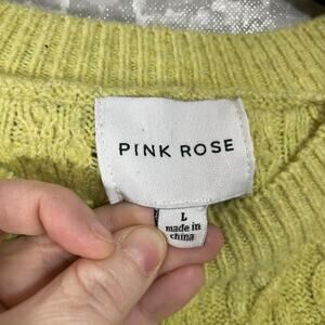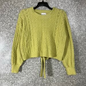 Pink Rose Women's Green Cable Knit Tie Back Cropped Sweater - Size Large - Cozy