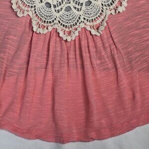 Pink Rose Womens Lace Embroidered Back Sleeveless Top MED Gray Pink Colorblock