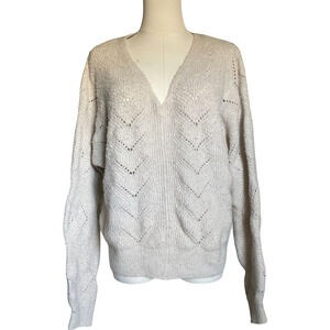 Pink Rose Women's Medium V-Neck Sweater Recycled Polyester Solid Beige Knit