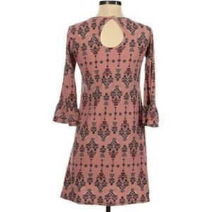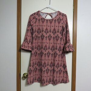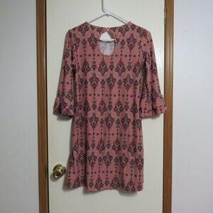 Pink Rose Womens Sz Small 3/4 Ruffle Sleeve Dress Dark Pink Medallion