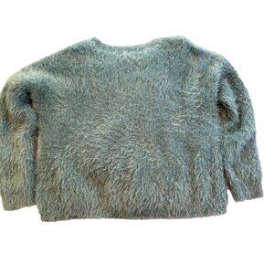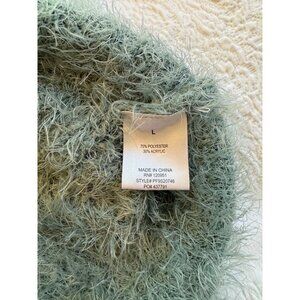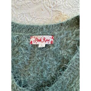 Pink Rose Womens V Neck Sweater L Lightweight Long Sleeved Fluffy Mint Green