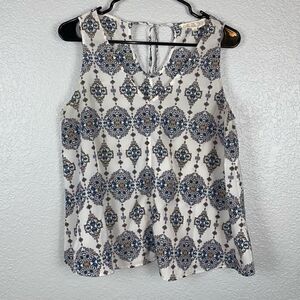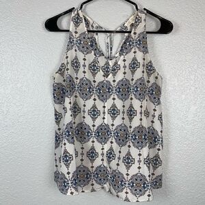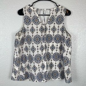 Pink Rose Womens Printed V-Neck Sleeveless T-Back Tank Top White Black Large