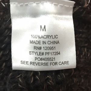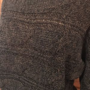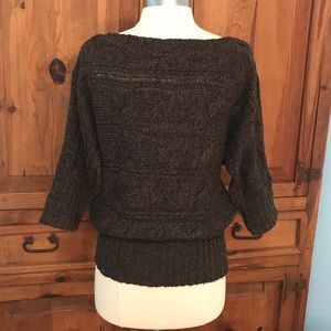 Dark chocolate brown with flecks of tan cable knit sweater. 3/4 sleeves.