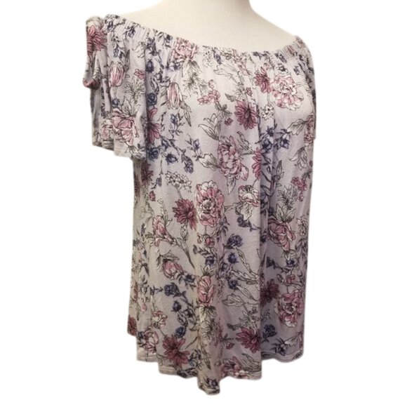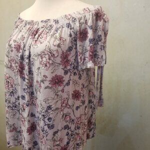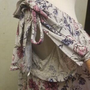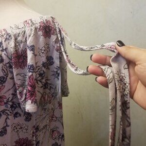 In good condition, gently used. Pink Rose short sleeve tie detailing top can be work off the shoulder or above,