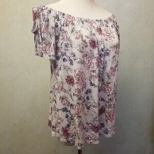 Pink Rose floral top women's size Large (P11)