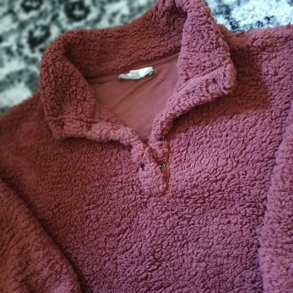 Sherpa like pullover, side pockets. Like new. Color is slightly darker in person. Beautiful autumn color!