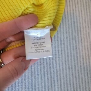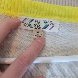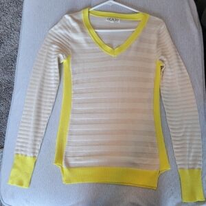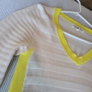 Light weight long sleeve sweater. Bold yellow details on cream sweater. Measurements in photos.